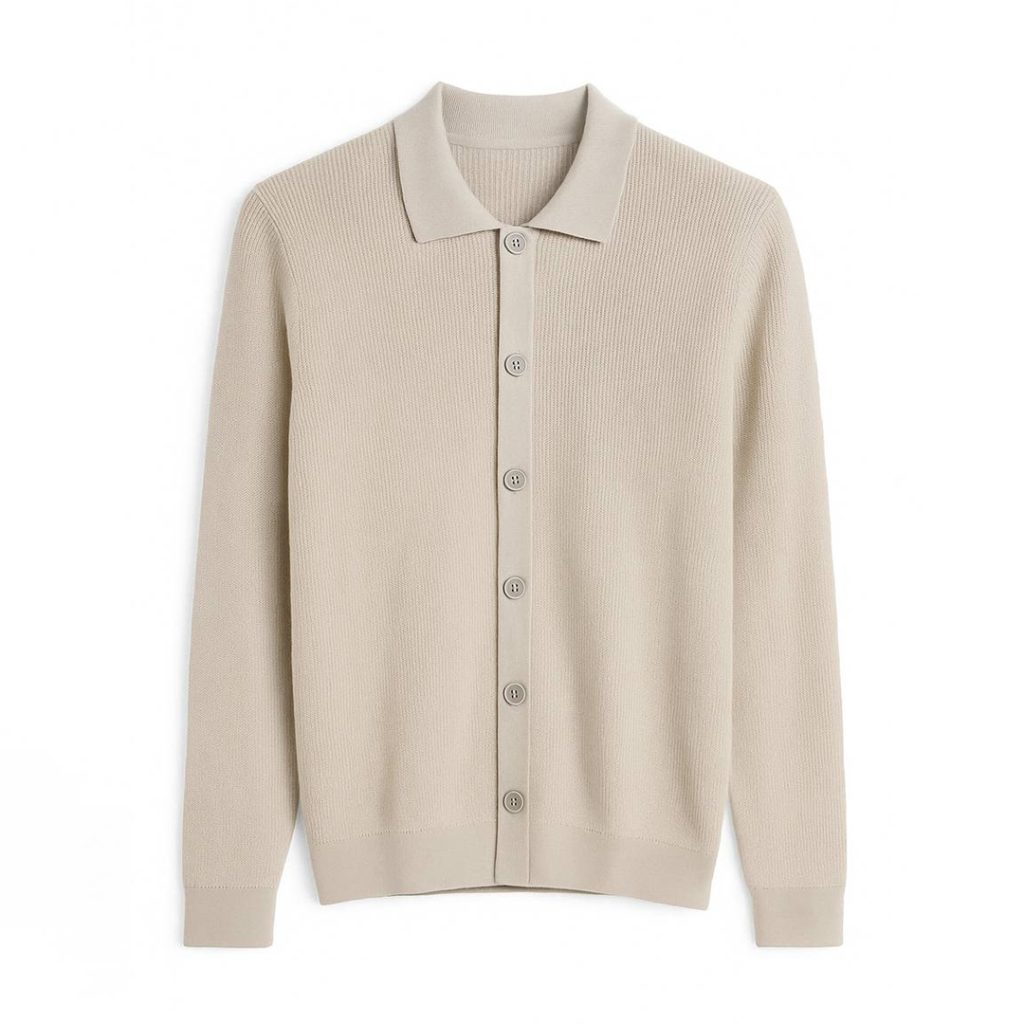 این ژاکت بافت شیک و خوشفرم، ترکیبی از سادگی و جذابیت کلاسیک است. طراحی راهراه عمودی ریز ، ظاهر لباس را شیکتر و کشیدهتر نشان میدهد و یقه پولو در کنار دکمههای سرتاسری، استایلی تمیز، مرتب و قابلانعطاف ایجاد میکند.