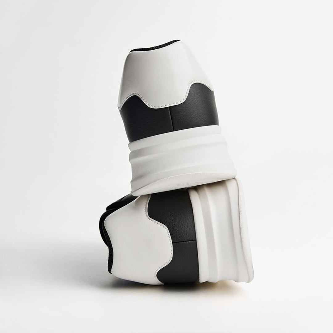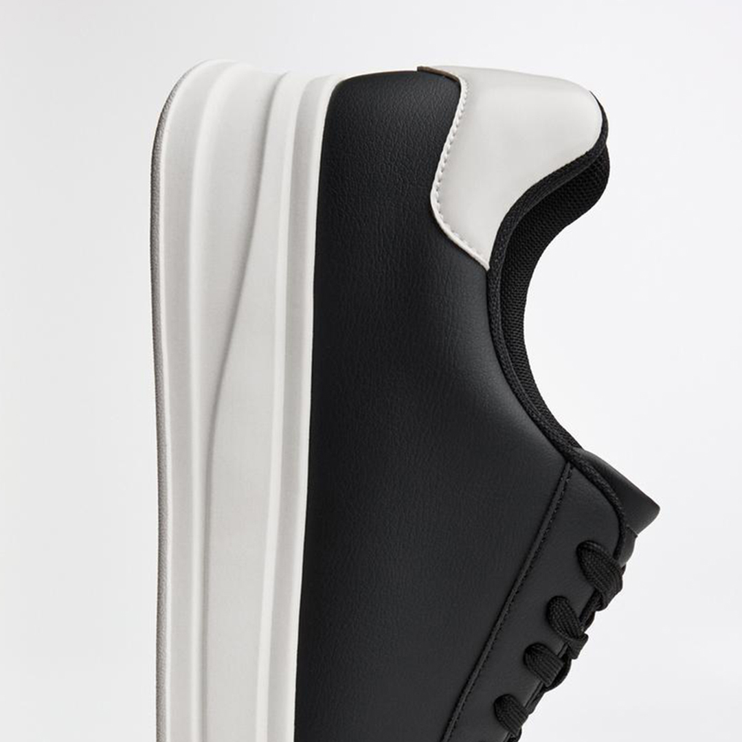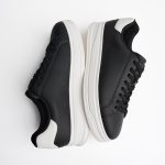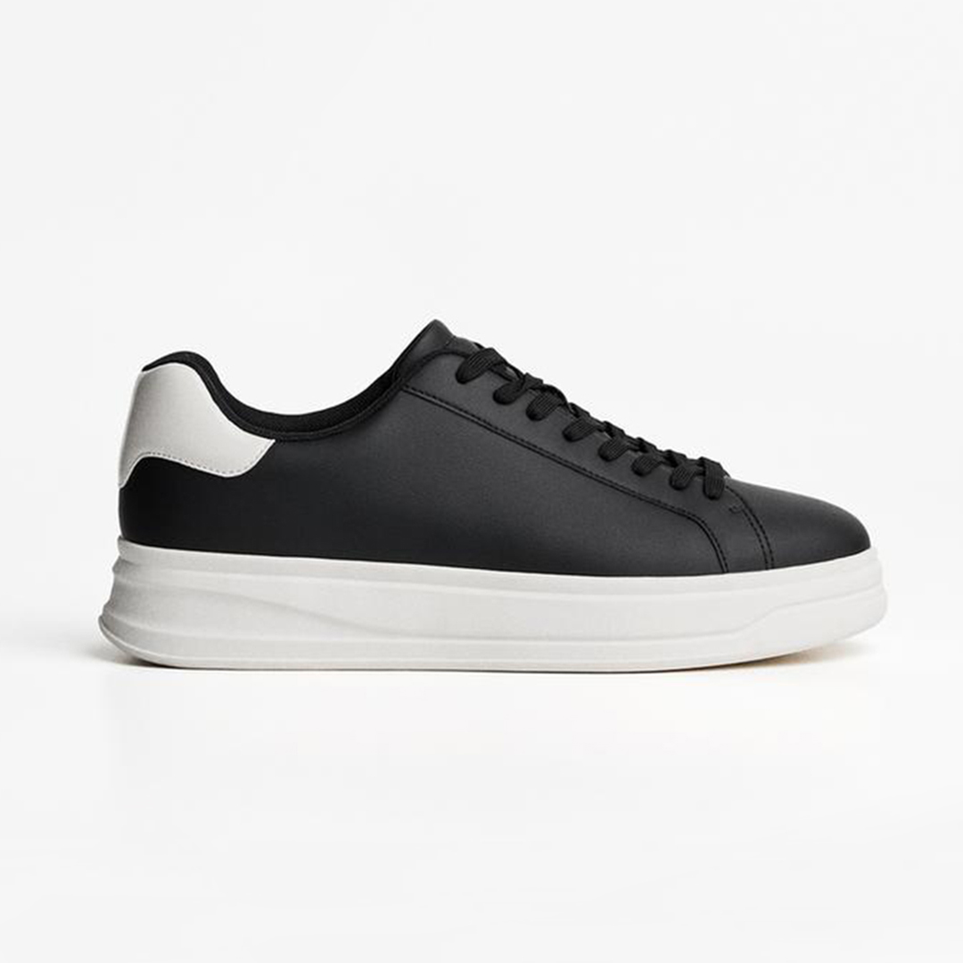 این کفش مردانه با طراحی مینیمال و رنگ‌بندی شیک مشکی–سفید، گزینه‌ای عالی برای استایل روزمره، شهری و حتی استایل‌های نیمه‌رسمی است. رویه‌ی یک‌دست مشکی در کنار زیره سفید، ترکیبی مدرن و جذاب ایجاد کرده که به‌راحتی با انواع لباس‌ها ست می‌شود.